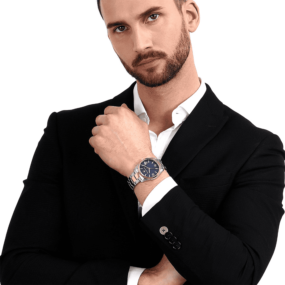 Открийте елегантността и изтънчеността с мъжкия часовник Maserati R8853151006, част от колекцията ATTRAZIONE. Този изискан часовник, изработен от неръждаема стомана с розово златно PVD покритие, съчетава перфектно функционалността с модерния дизайн. Разполага с надежден кварцов механизъм, който осигурява както показване на часа, така и на датата. С диаметър на корпуса от 43 мм, циферблатът в интензивно синьо е акцентиран с розово златни детайли, предлагайки приятен и привлекателен контраст. Гривната от стомана, с елегантно покритие, се затваря с разгъваща се закопчалка, оборудвана със система за заключване за безопасността на потребителя. Часовникът е водоустойчив до 5 ATM, което го прави идеален за ежедневна употреба. Продуктът идва в оригиналната опаковка и включва 2-годишен гаранционен сертификат. Изберете часовника Maserati, за да добавите нотка стил към всяко облекло.