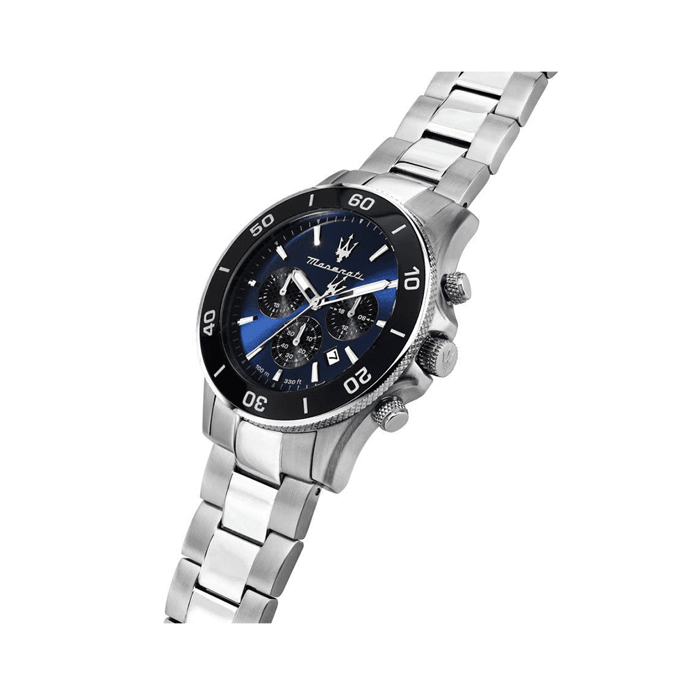 Мъжкият часовник Maserati, референция R8873600009, е част от колекцията COMPETITION и перфектно отразява спортния дух, комбиниран с модерната елегантност на италианската марка. Изцяло изработен от неръждаема стомана, часовникът се отличава с издръжливост и премиум външен вид. Здравият корпус с диаметър 43,00 мм помещава интензивно син циферблат, който добавя дълбочина и характер на дизайна. Той е защитен от устойчиво минерално стъкло, предназначено да осигури яснота и защита при ежедневна употреба.
