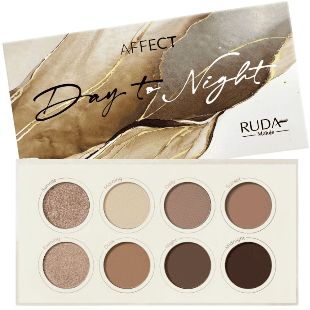 AFFECT Палитра сенки за очи Day to Night (16g) е универсална палитра, създадена да улесни прехода от нежен дневен грим към драматичен вечерен. С внимателно подбрани нюанси, палитрата включва както неутрални и светли тонове, така и интензивни акценти, всички в лесна за смесване формула с висока пигментация.